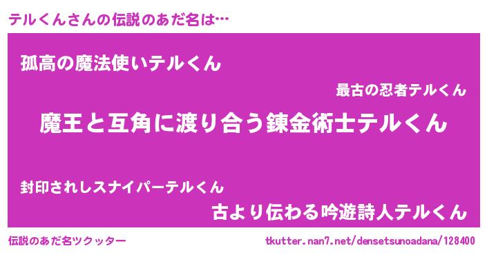 | ヒーロー風カッコイイあだ名 | 『仮面テルダー』『友情の使者テルくん』 |