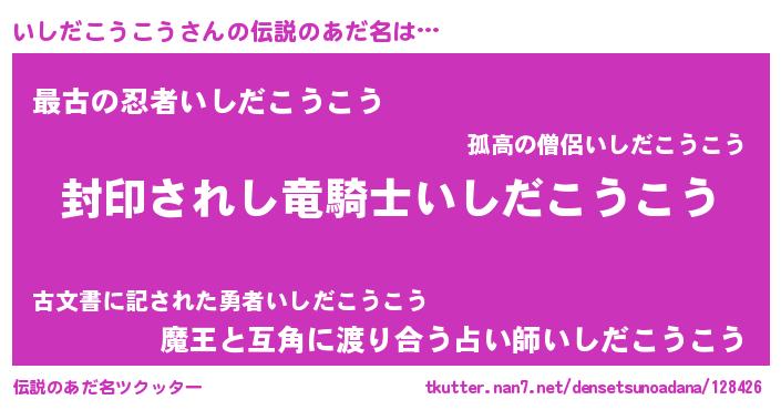 | ヒーロー風カッコイイあだ名 | 『スーパーイシダコウコウ』 |