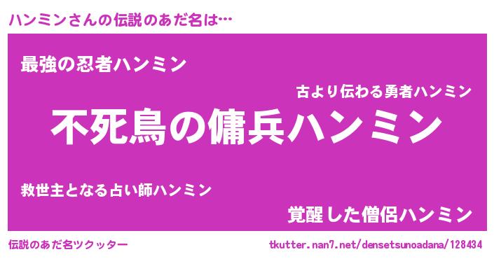| ヒーロー風カッコイイあだ名 | 『スーパーハンミン』『天弓騎士ハン』 |