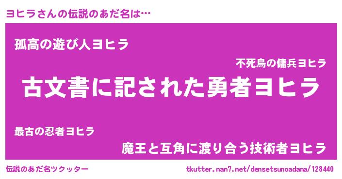 | ポケモン風あだ名 | 『ヨヒキング』『ゼニヨヒ』 |