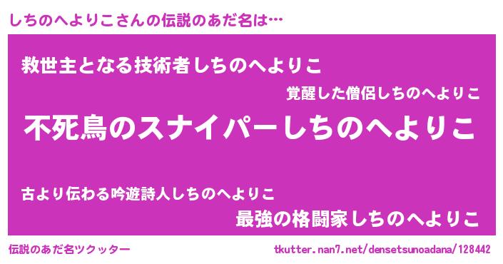 | 女子向けラノベタイトル風あだ名 | 『しちのへよりこ姫と円卓の騎士』 |
