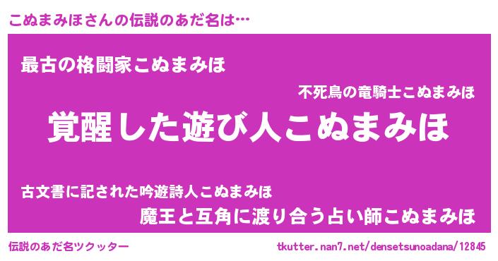 | 意味不明あだ名 | 『とにかく怪しいこぬまみほ』 |