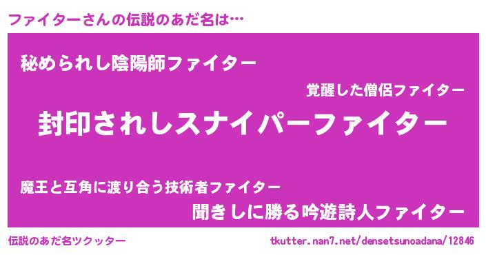 | 男性向けラノベタイトル風あだ名 | 『ファイターアートオンライン』 |