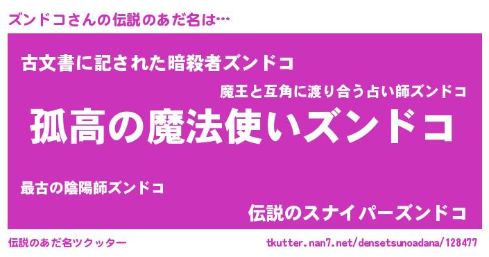 | ヒーロー風カッコイイあだ名 | 『黄金騎士ズン』『ネオズンドコ』 |