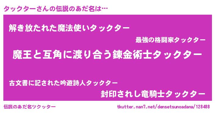 | ヒーロー風カッコイイあだ名 | 『サイバー戦士タックター』 |