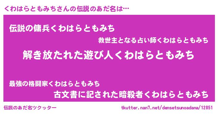 | 意味不明あだ名 | 『とにかく怪しいくわはらともみち』 |