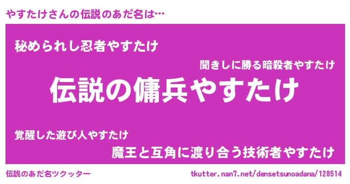 | ヒーロー風カッコイイあだ名 | 『仮面ヤスダー』『スーパーヤスタケ』 |