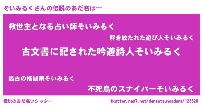 | 意味不明あだ名 | 『自称そいみるく』『永久保存そいみるく』 |