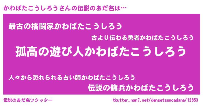 | 胡散臭い通販商品みたいなあだ名 | 『信頼と実績のペンダント…その名も「かわばたこうしろう」』 |