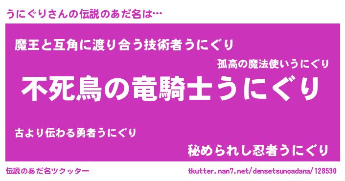 | 意味不明あだ名 | 『住所不定無職うにぐり(4歳)』 |