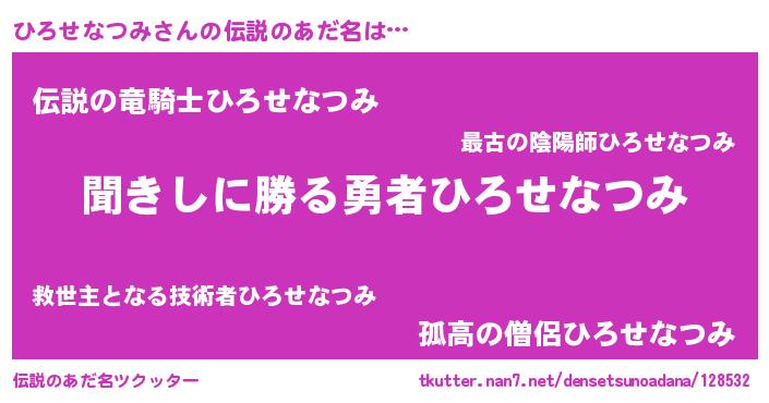 | 意味不明あだ名 | 『自称ひろせなつみ』 |