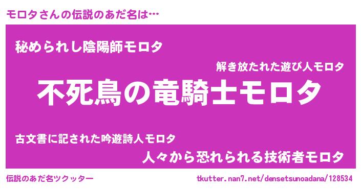 | ヒーロー風カッコイイあだ名 | 『スーパーモロタ』『ウルトラモロタマン』 |