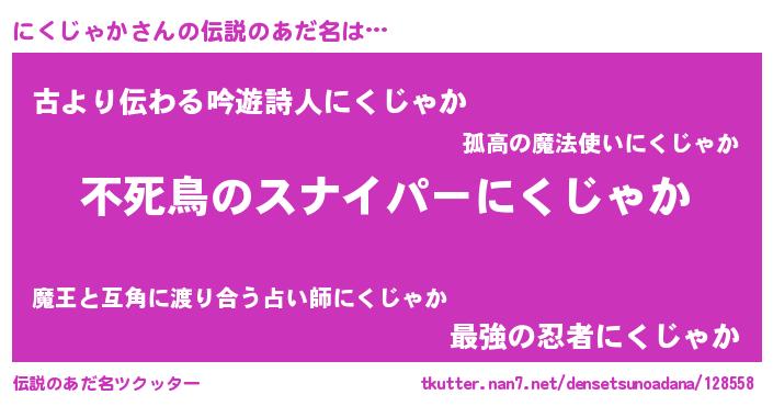 | 男性向けラノベタイトル風あだ名 | 『転生したらにくじゃかだった件』 |