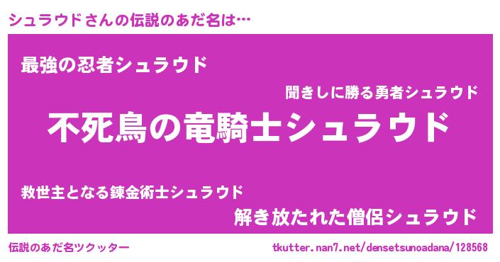 | 男性向けラノベタイトル風あだ名 | 『シュラウドに滅ぼされるだけの簡単なお仕事です』 |
