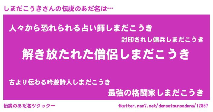 | ヘコむあだ名 | 『しま太郎』『つくし』『しまもー』 |
