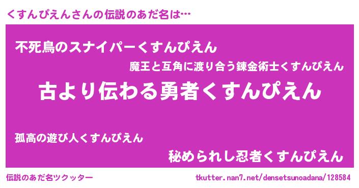 | 意味不明あだ名 | 『住所不定無職くすんぴえん(91歳)』 |