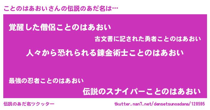 | 男性向けラノベタイトル風あだ名 | 『緋弾のコトノハアオイ』 |