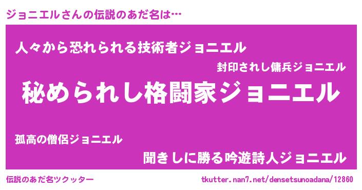| 意味不明あだ名 | 『自称ジョニエル』『永久保存ジョニエル』 |