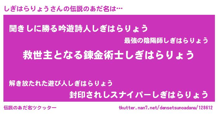 | ヒーロー風カッコイイあだ名 | 『天空の使者しぎはらりょう』 |