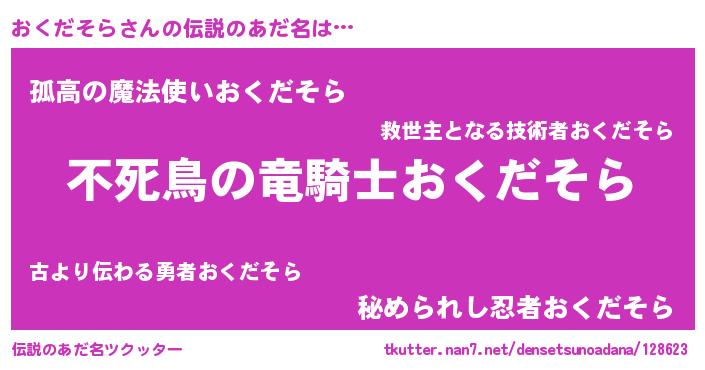 | 胡散臭い通販商品みたいなあだ名 | 『世界中を虜にした100年もののヴィンテージワイン…その名も「おくだそら」』 |