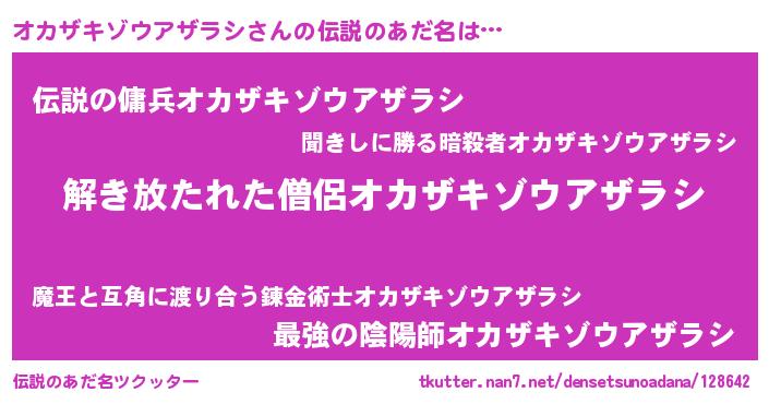 | 意味不明あだ名 | 『とにかく怪しいオカザキゾウアザラシ』 |