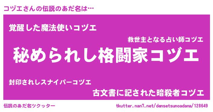 | 女子向けラノベタイトル風あだ名 | 『コヅエなんてお断りですっ。』 |