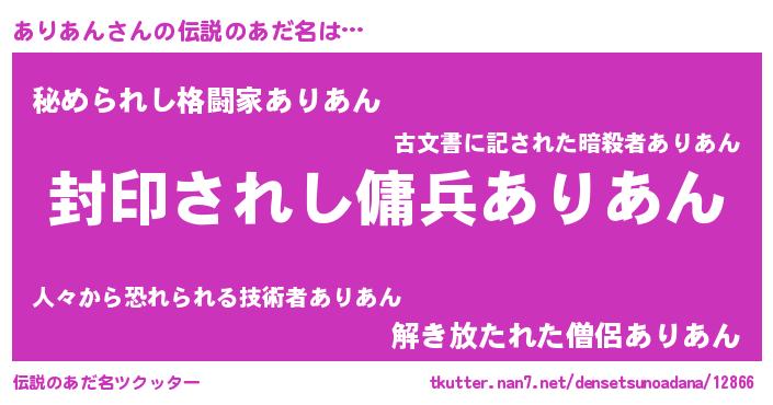 | ヒーロー風カッコイイあだ名 | 『スーパーアリアン』『最強戦士アリアン』 |