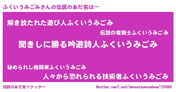 | ヒーロー風カッコイイあだ名 | 『ネオフクイウミゴミ』『幻影騎士フク』 |
