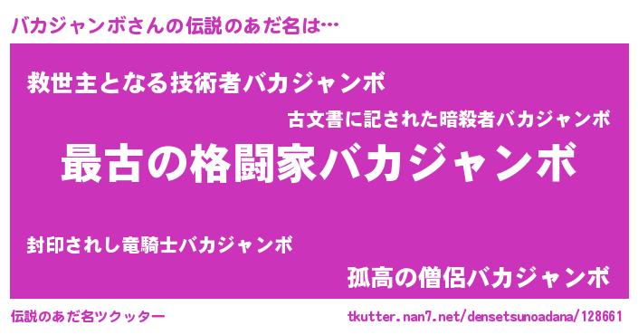 | 意味不明あだ名 | 『バカジャンボフォーエバー』 |
