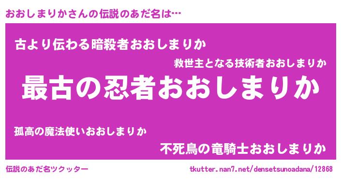 | 意味不明あだ名 | 『自称おおしまりか』 |