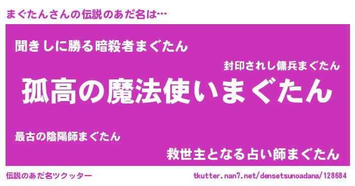 | 胡散臭い通販商品みたいなあだ名 | 『信頼と実績のサプリメント…その名も「まぐたん」』 |