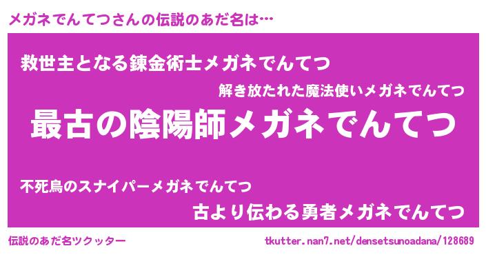 | 意味不明あだ名 | 『住所不定無職メガネでんてつ(81歳)』 |