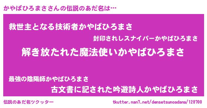 | 男性向けラノベタイトル風あだ名 | 『ダンジョンにかやばひろまさを求めるのは間違っているだろうか』 |