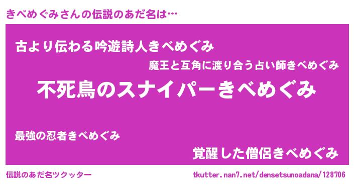 | ヒーロー風カッコイイあだ名 | 『サイバー戦士キベメグミ』 |