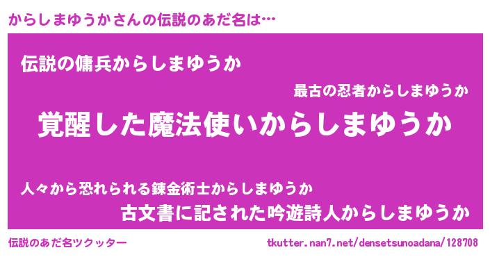 | 意味不明あだ名 | 『住所不定無職からしまゆうか(5歳)』 |