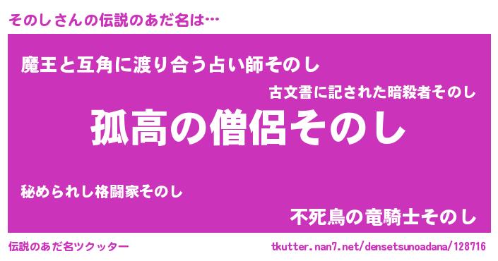 | 意味不明あだ名 | 『エリンギ科そのし属』『自称そのし』 |