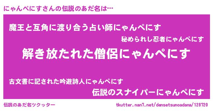 | 意味不明あだ名 | 『とにかく怪しいにゃんぺにす』 |