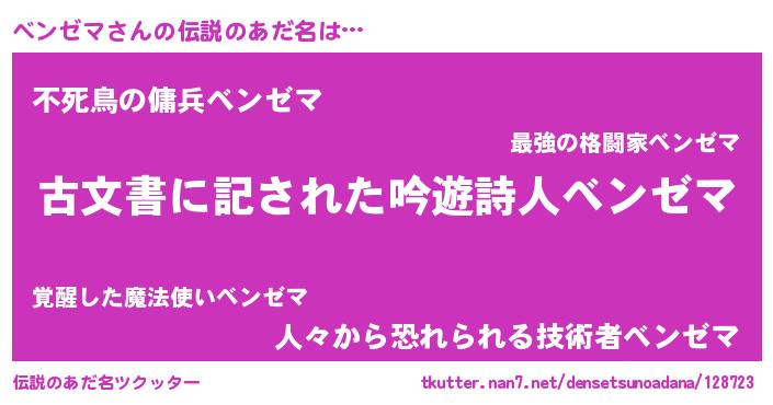 | ファンタジー風あだ名 | 『ベンディッシュ』『ゼベントゥ』 |