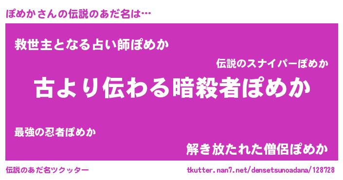 | ヒーロー風カッコイイあだ名 | 『ネオポメカ』『慈愛の使者ぽめか』 |