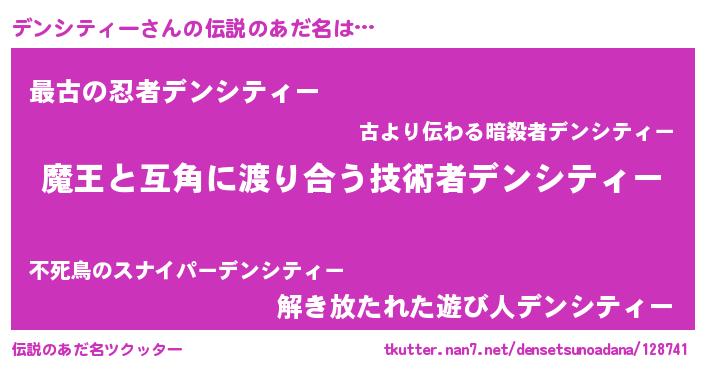 | ヒーロー風カッコイイあだ名 | 『慈愛の使者デンシティー』 |