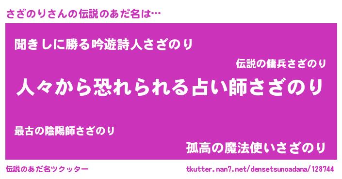 | ヘコむあだ名 | 『さざのり(笑)』『さざお』『牛乳』 |