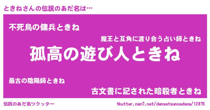 | 意味不明あだ名 | 『とにかく怪しいときね』『自称ときね』 |