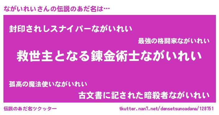 | ヘコむあだ名 | 『ながっふぃ~』『ながいれい(遠い目)』 |