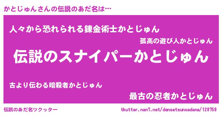 | 男性向けラノベタイトル風あだ名 | 『カトジュンスレイヤー』 |