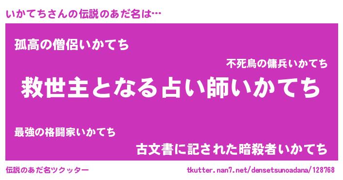| ヒーロー風カッコイイあだ名 | 『天空の使者いかてち』『幻影騎士イカ』 |