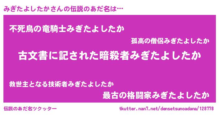 | ヘコむあだ名 | 『みぎたよしたか(爆)』『みぎにー』 |
