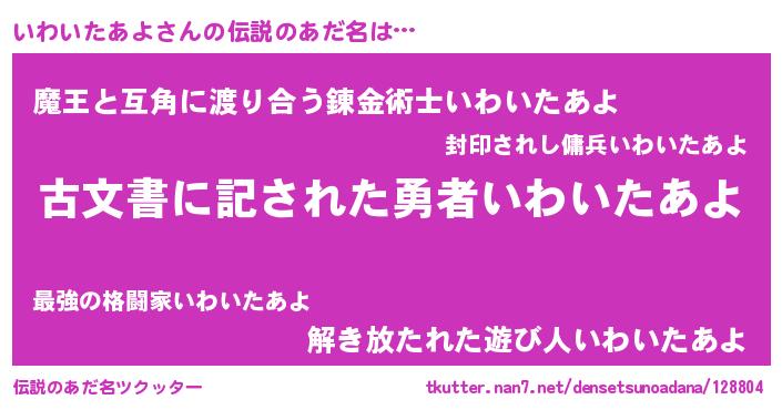 | 意味不明あだ名 | 『永久保存いわいたあよ』 |