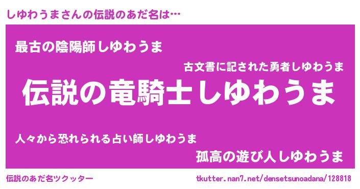 | ヒーロー風カッコイイあだ名 | 『スーパーシユワウマ』『銀牙騎士シユ』 |
