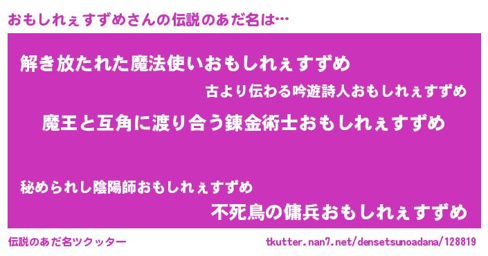 | ヒーロー風カッコイイあだ名 | 『サイバー戦士オモシレェスズメ』 |