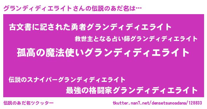 | 胡散臭い通販商品みたいなあだ名 | 『信頼と実績のサプリメント…その名も「グランディディエライト」』 |